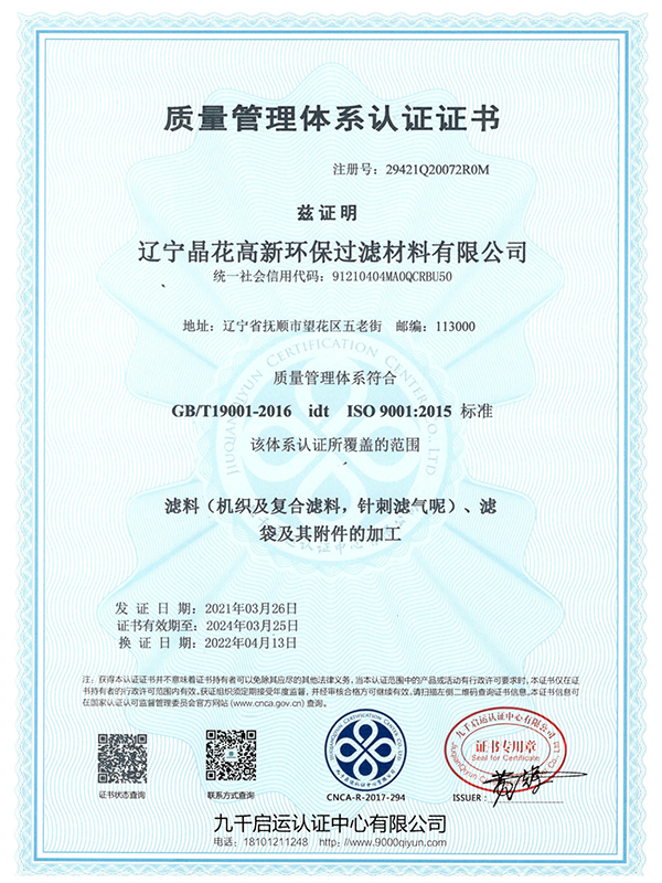 遼寧晶花高新環(huán)保過濾材料有限公司主要生產(chǎn)設(shè)備來自德國海爾格特、布魯克耐、庫斯特公司,針刺梳理設(shè)備來自英國,極大提高產(chǎn)品抱合能力、均勻度.....